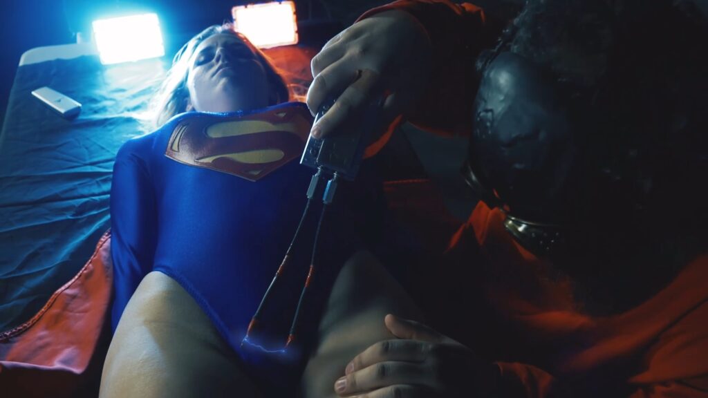 Super Girl, now in a precarious situation, struggles to retain her clothes and dignity (only in the full video). However, with her powers gone, every move becomes a struggle, and escape seems increasingly elusive. The lair transforms into a chaotic battleground where the odds are stacked against the once invincible Super Girl.